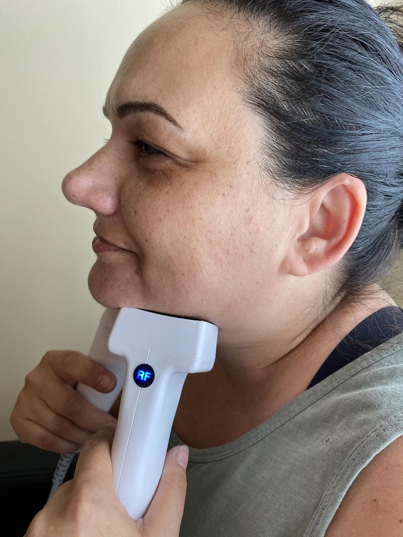 A zsírcsökkentést elősegítve az RF energia fokozhatja a kollagén termelést, helyreállítja a megereszkedett bőrt és ráncokat, javítva ezzel a teljes arc és állkontúrt. A bőr simábbá, feszesebbé válik ezáltal a kezelt terület is formásabbá alakul.